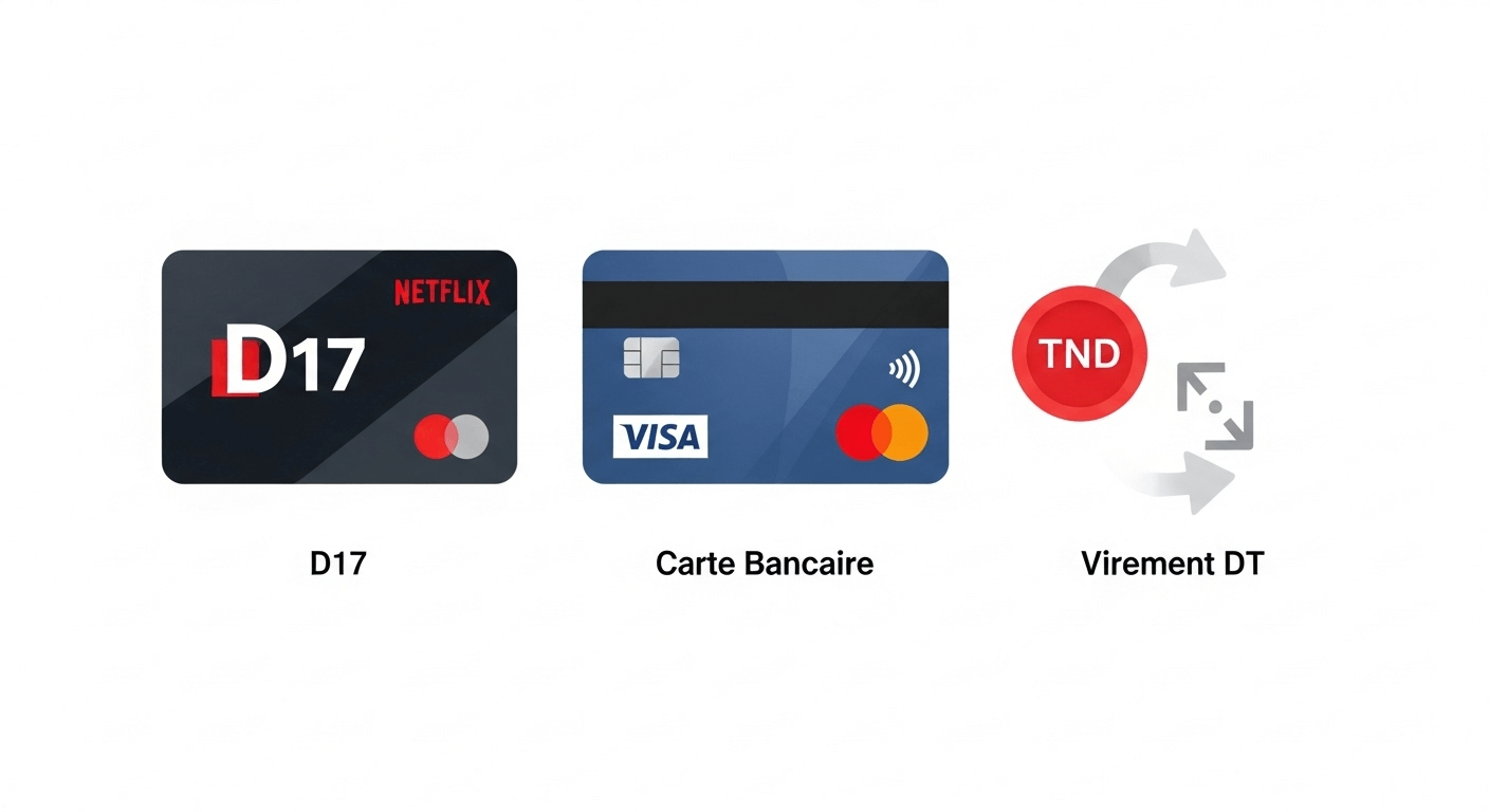Netflix accepte officiellement les cartes Visa et Mastercard internationales. En Tunisie, cela signifie que vous devez posséder une carte bancaire avec autorisation de paiement international. Les principales banques tunisiennes proposent ces cartes, mais elles nécessitent souvent des justificatifs et sont soumises aux quotas de devises établis par la Banque Centrale de Tunisie.